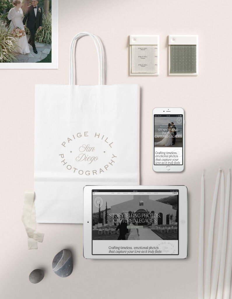 Before working together, Paige had a DIY brand and website that no longer reflected her elevated vision. She wanted a look that felt romantic, modern, and bold—something that matched the cinematic experience she creates for her couples.